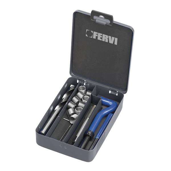 Kit de réparation de filetages Fervi UNF (pouces) 1/4 x 28 avec inserts et outils