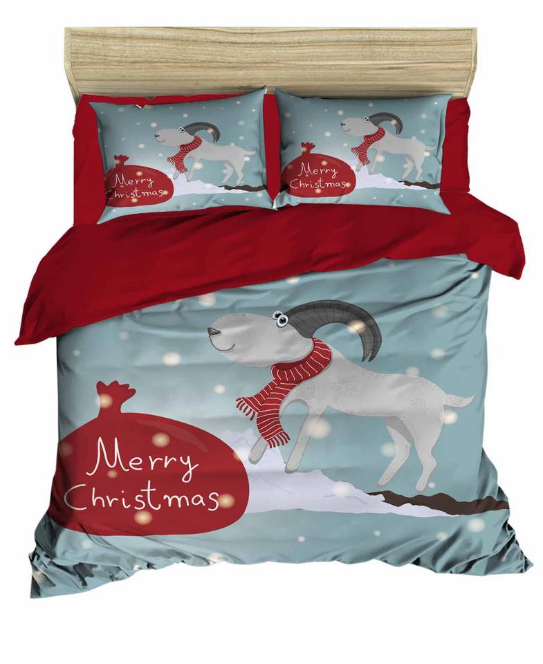 Ensemble de housse de couette double impression numérique motif de Noël festif 200x220 cm Ran force coton