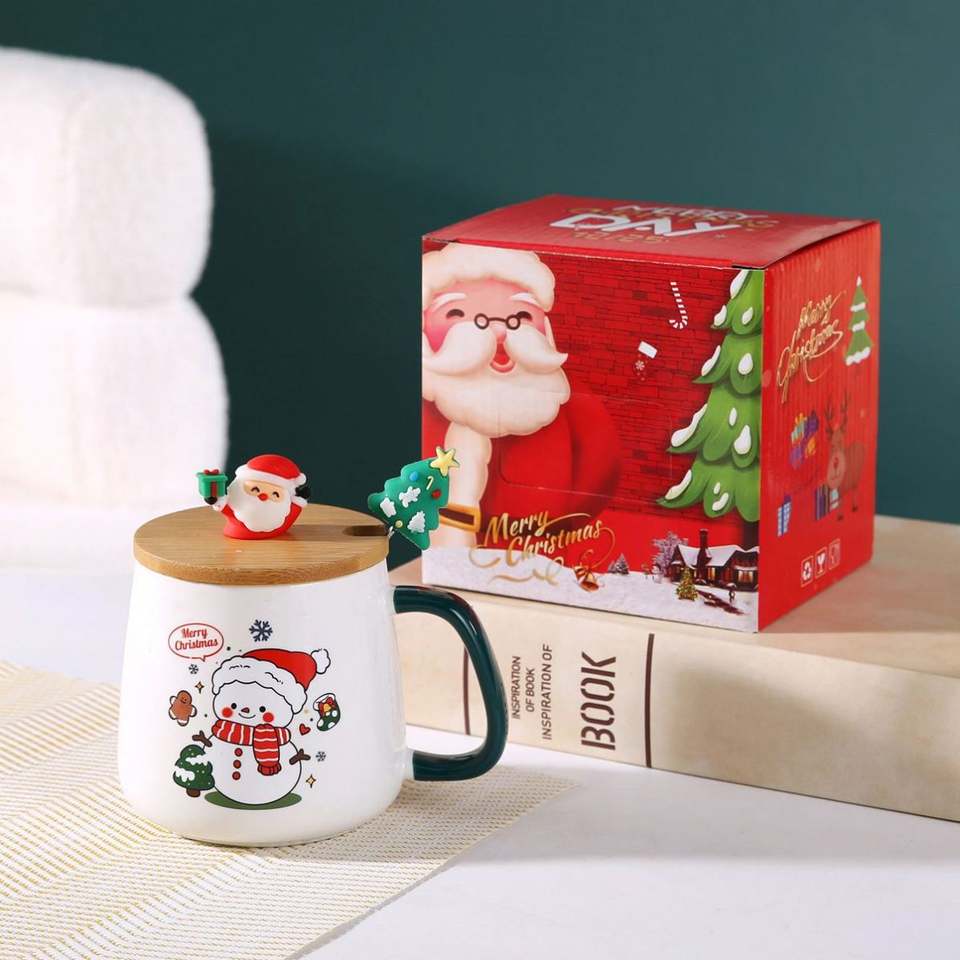 Ensemble de tasses à café en céramique personnalisées festives avec couvercle en bois, vente en gros, vaisselle de fête, 301 400 ml, cadeaux de Noël