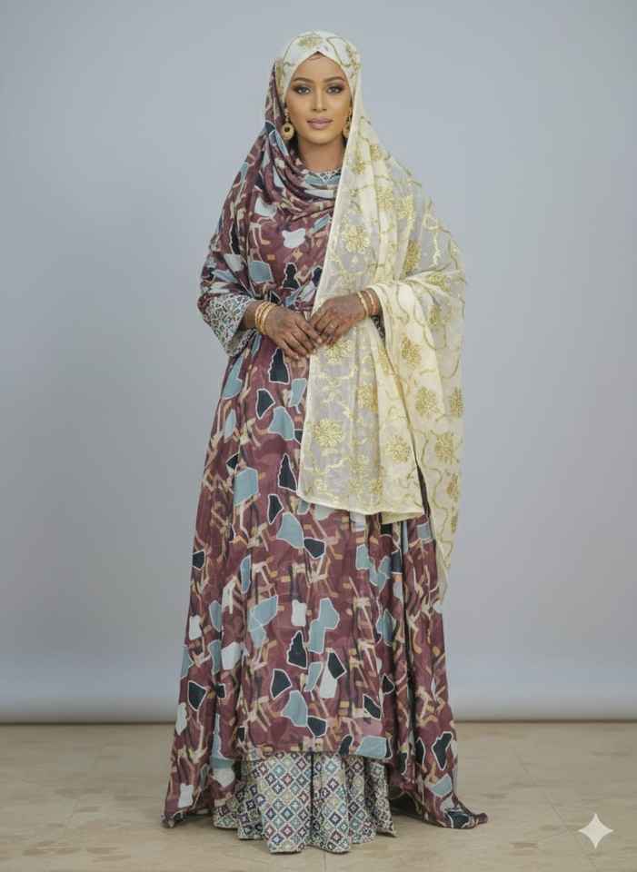 Festive Eid Collection Luxury Woven Jacquard Plain Attire Somalian for Dirac Rose Flower Digital Print Design for Festival