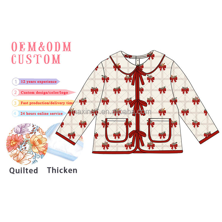Veste matelassée festive à nœud rouge avec rembourrage en coton épais pardessus d'hiver chaud pour les tout-petits aux enfants nouveau manteau de Noël pour les filles