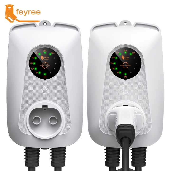 Chargeur de voiture électrique Feyree 7KW Type 2 32A, courant réglable, version prise de charge rapide, station de charge murale, support de câble gratuit