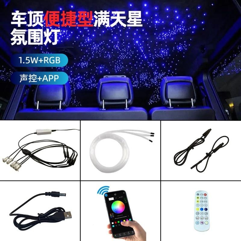 Kit de Fibres Optiques Étoiles Lumières RGB pour Plafond de Voiture, Ciel Étoilé de Toit avec Contrôle via Application Bluetooth et Musique, 600 Étoiles
