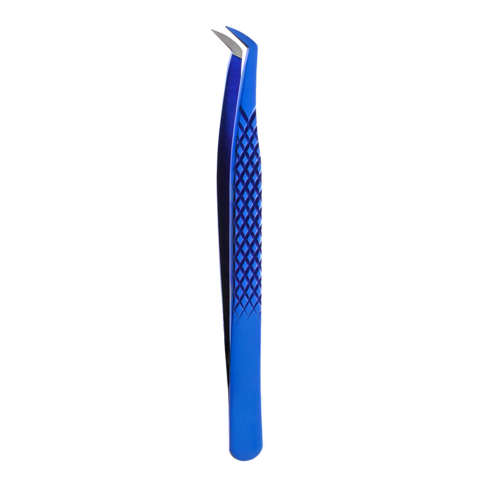 Pince à épiler d'extension de cils à volume enduit de plasma de couleur bleue