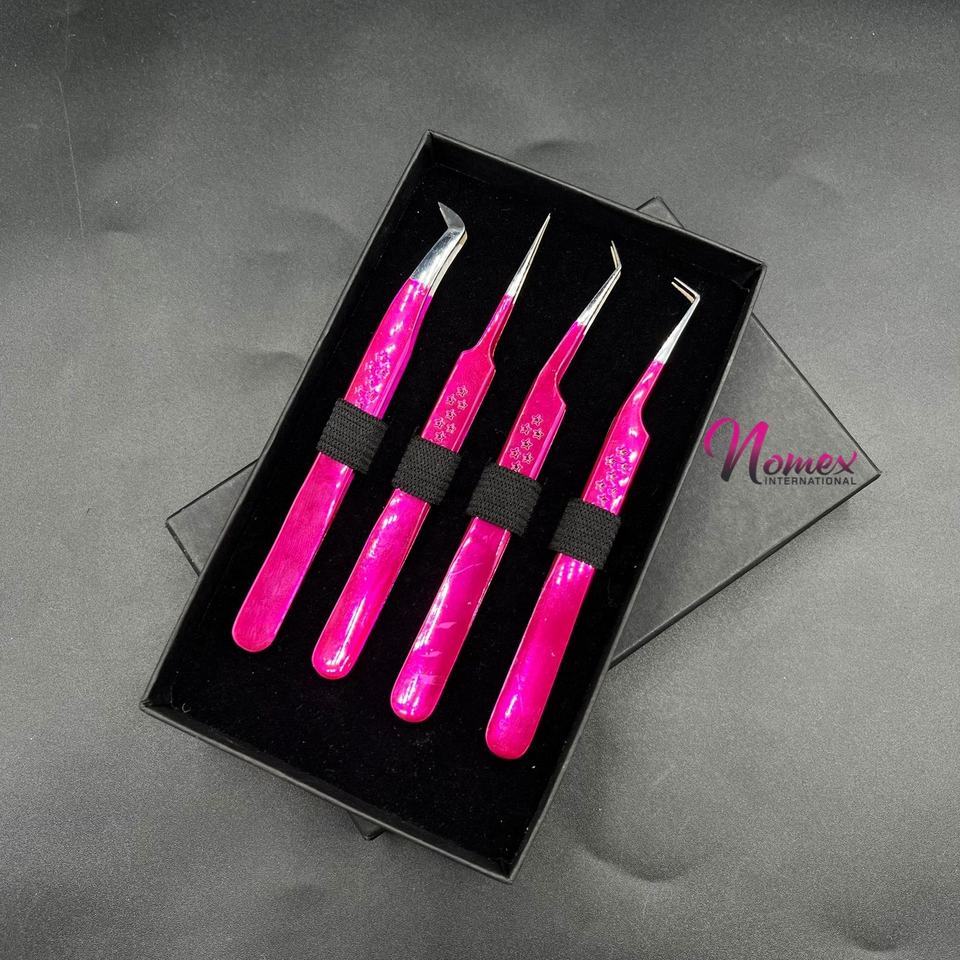 Pince à épiler pour extensions de cils en acier inoxydable, rose poudré, gravée d'une étoile, antibactérienne, légère, toutes directions
