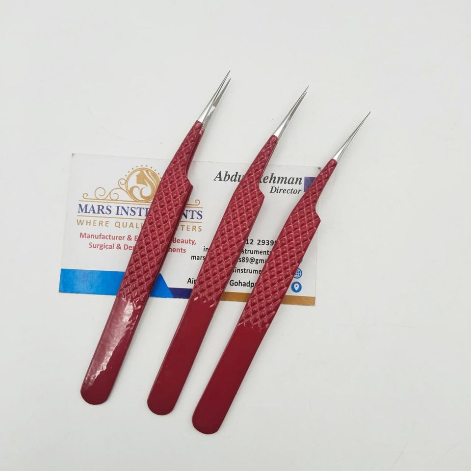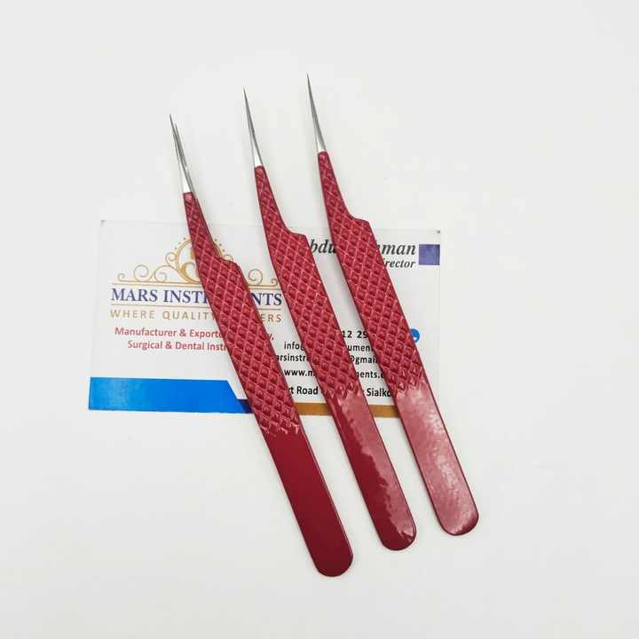 Pince à épiler pour extensions de cils à pointe en fibre, pointe d'isolation pointue, couleur rouge