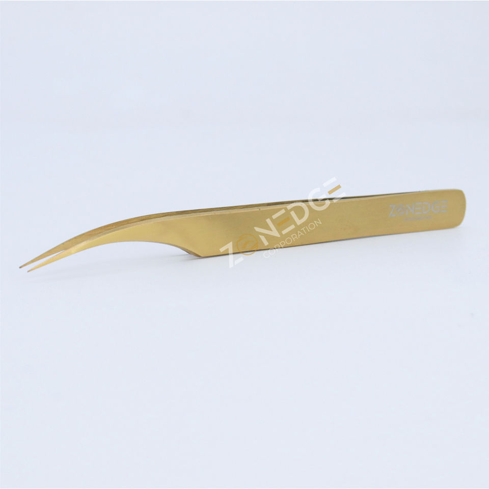 Pince à épiler d'extension de cils à pointe dorée enduite de plasma à pointe de fibre prix de gros pince à cils de meilleure qualité marque privée accepter