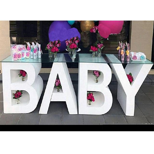 Table à lettres en fibre de verre pour décoration de mariage, décoration de table pour bébé, lettre en fibre de haute qualité, lettre en fibre blanche, table BABY