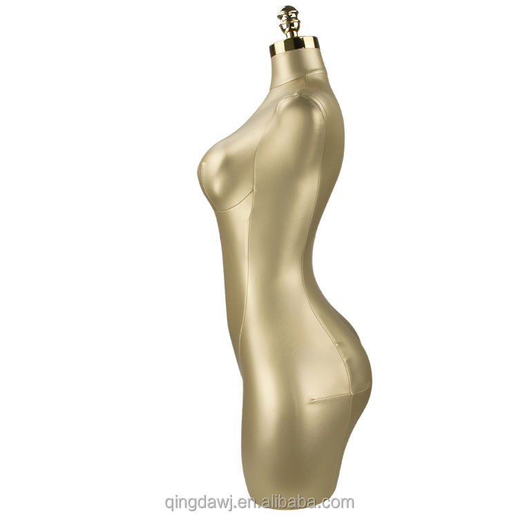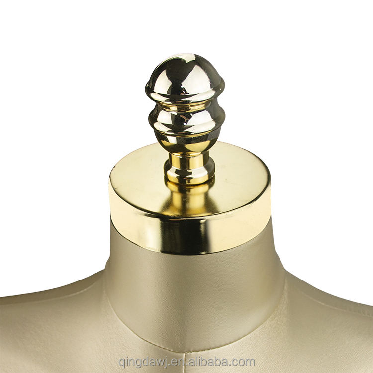 Mannequin Buste de Couture Femme aux Formes Généreuses, Mi-Corps en Fibre de Verre Doré, Réglable pour Habillement et Confection