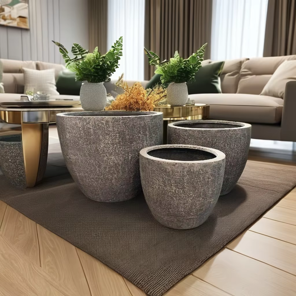 Fiberglass Lightweight Durable Polyresin Modern UNI EXIM Powder Coated Flower Pot for Home & Garden Use