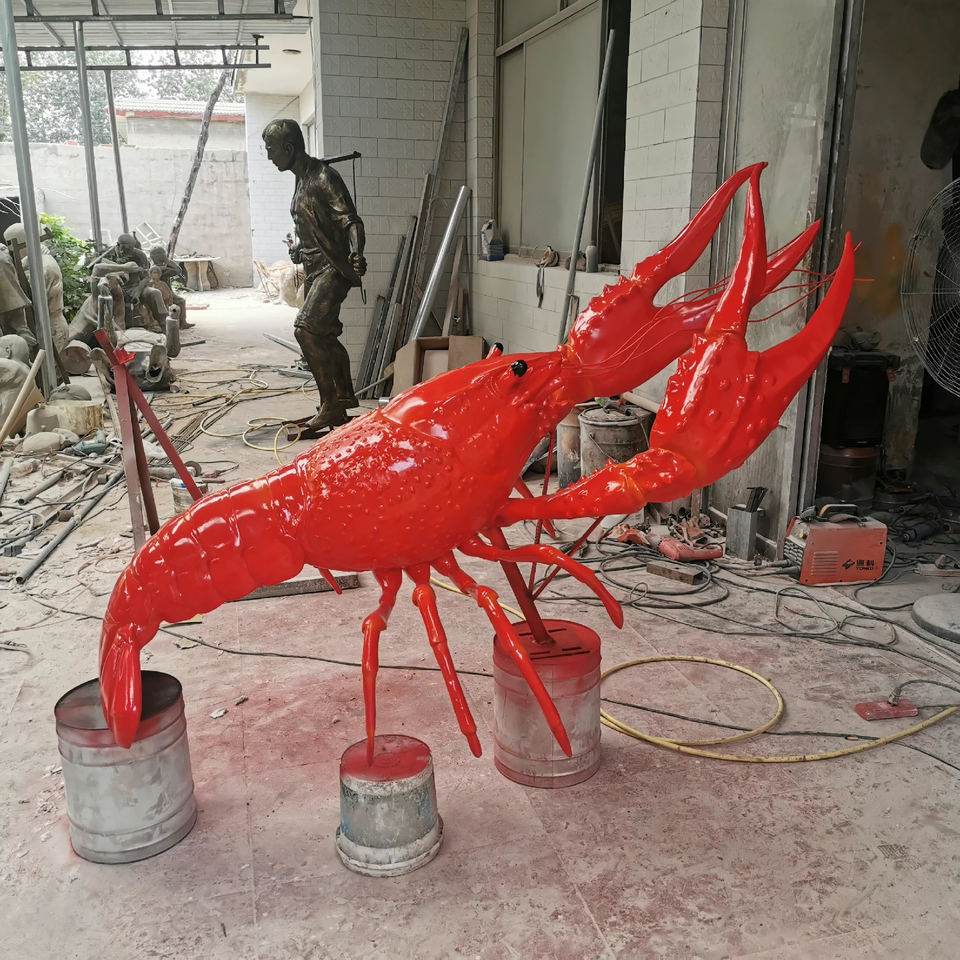 Sculpture en fibre de verre sur mesure, grande sculpture d'écrevisse en fibre de verre, décoration extérieure, grande sculpture d'animal