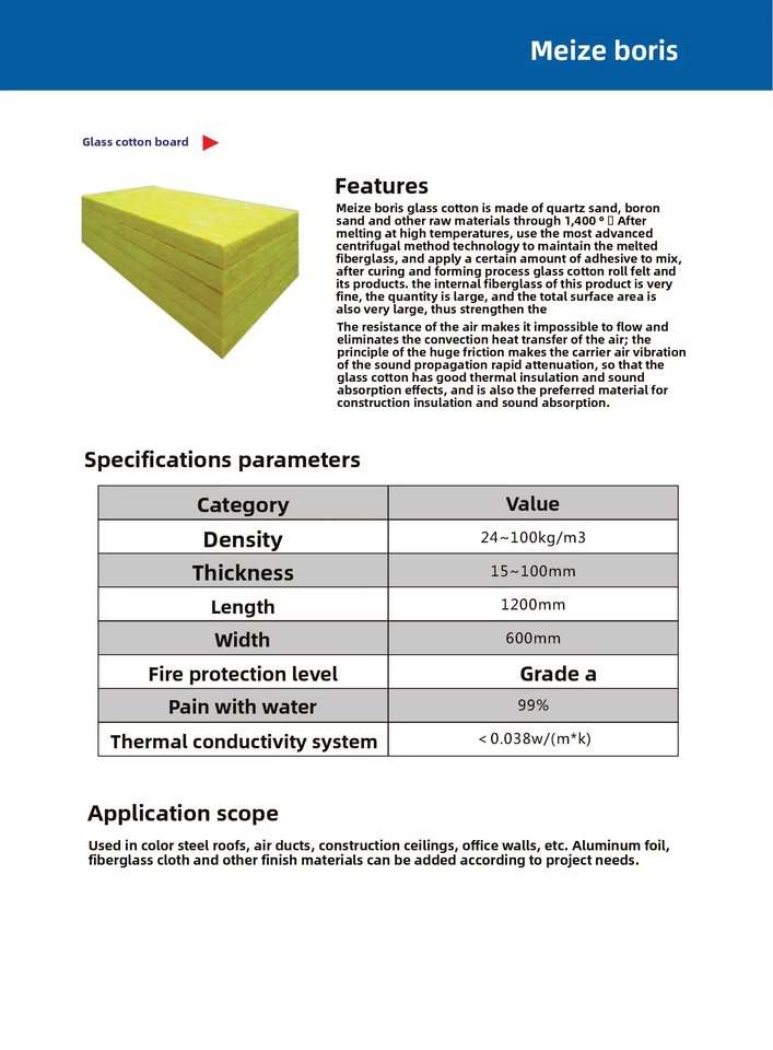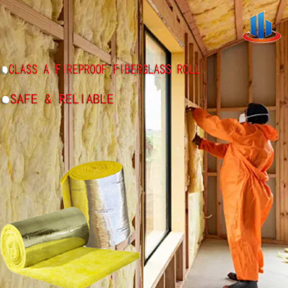 Rouleau de laine de verre Classe A Ignifuge Isolation thermique et acoustique Revêtement en feuille Écologique Certifié ISO Fabriqué sur mesure