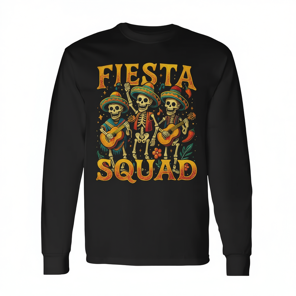 T-shirt à manches longues Fiesta Squad Skeleton, col rond unisexe, vêtements de fête pour adultes, thème mexicain Cinco De Mayo