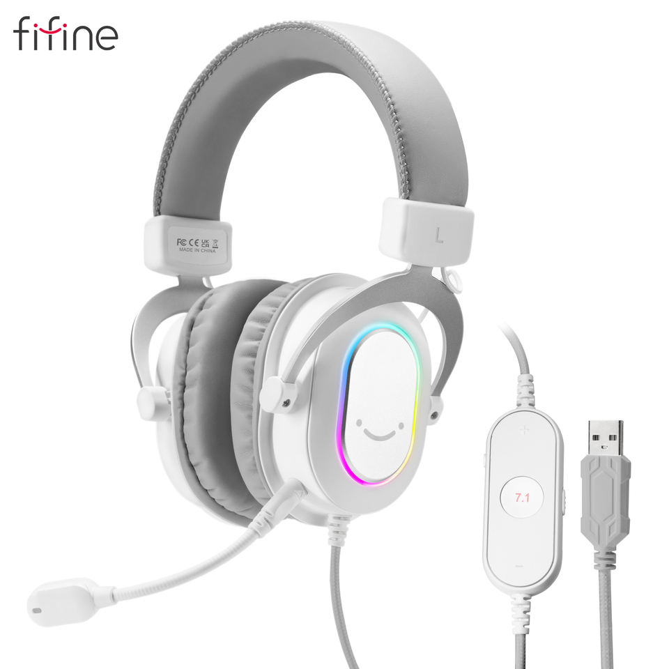 Casque de jeu Fifine 7.1 canaux RGB sur oreille et circum-auriculaire, suppression du bruit, casque USB filaire 3,5 mm avec micro