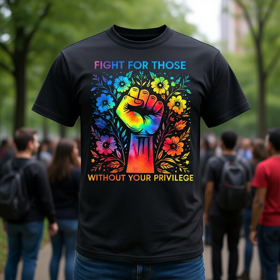 T-shirt « Fight For Those Without Your Privilege » avec motif poing arc-en-ciel, vêtement de sport, chemise tendance