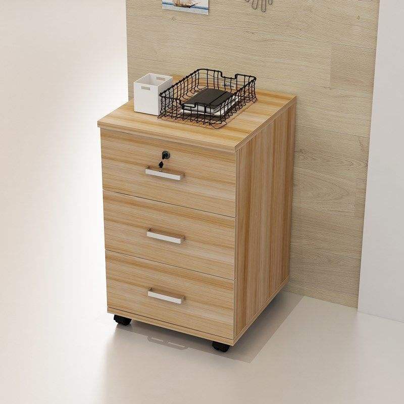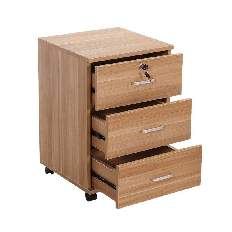 Meuble de classement mobile à 3 tiroirs verrouillable, couleur blanc noyer clair, type push-pull