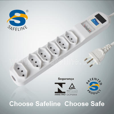 Fiche filtro de lina multiprise 6 voies 10A 250V 2P + T pour le marché brésilien