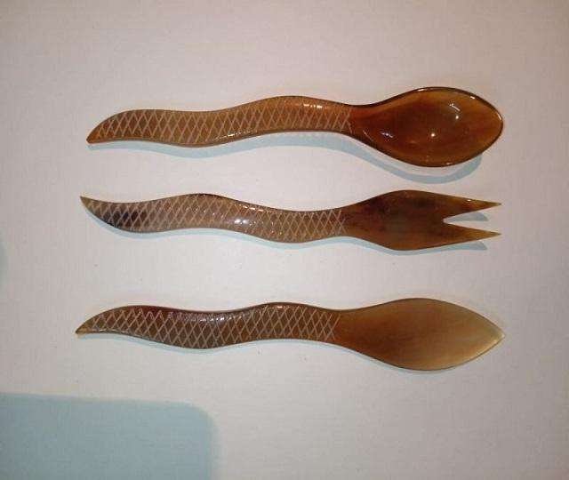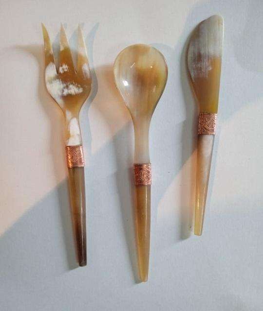 Vaisselle en corne Couverts en corne de buffle naturelle-Petites cuillères en acier miroir par f s international