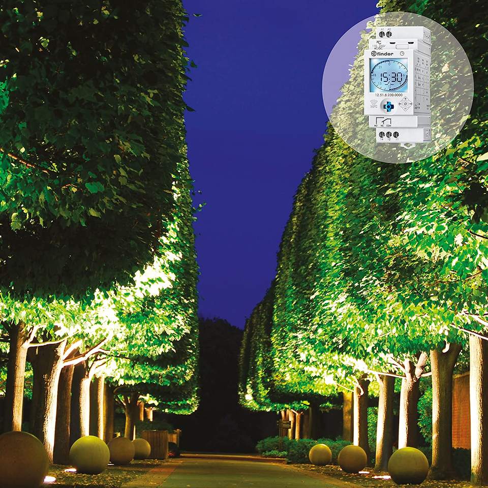 Minuteur numérique Finder 230V 16A avec programmation hebdomadaire et quotidienne NFC IP44