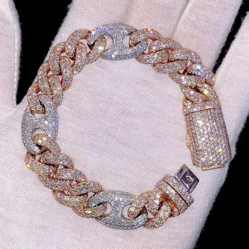 Bracelet en argent sterling 925 de qualité supérieure avec diamant en moissanite cultivé en laboratoire, finition lisse, bijoux