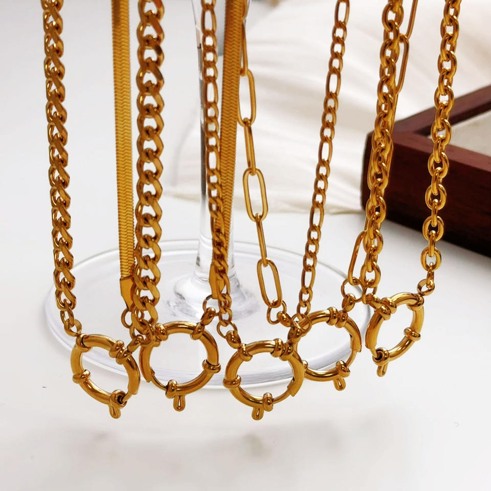 Colliers à chaînes fines en acier inoxydable plaqué or 18 carats PVD, étanches, avec fermoir marin à ressort, chaîne trombone pour breloques DIY