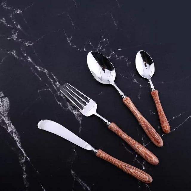 Ensemble de couverts en métal de qualité supérieure avec manche en bois, ustensiles de table durables et résistants à la rouille pour la cuisine quotidienne