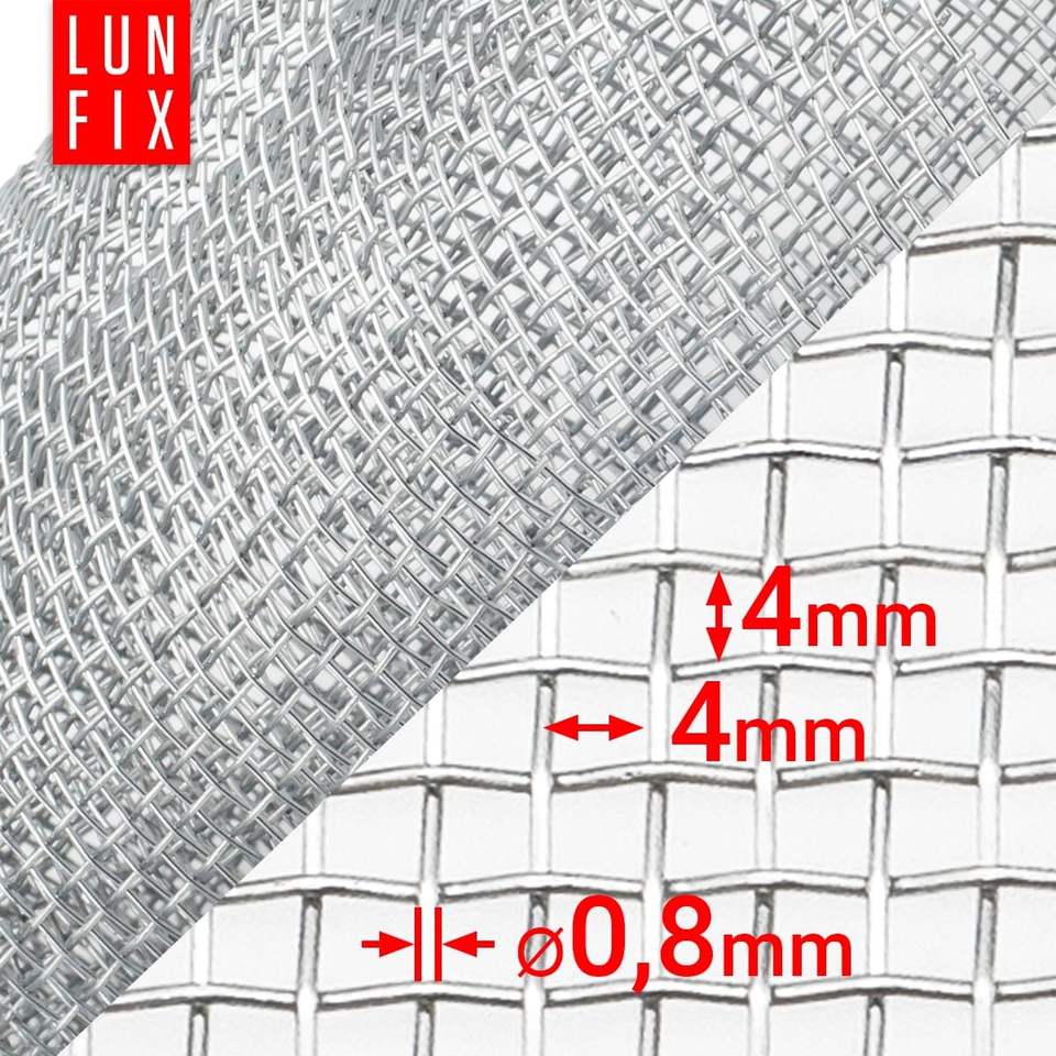 Maille de filtre fine - Vendue au mètre - Protection contre les parasites - Maille en acier galvanisé - 4 mm x 4 mm - 0,8 mm - 1 m x 0,5 m
