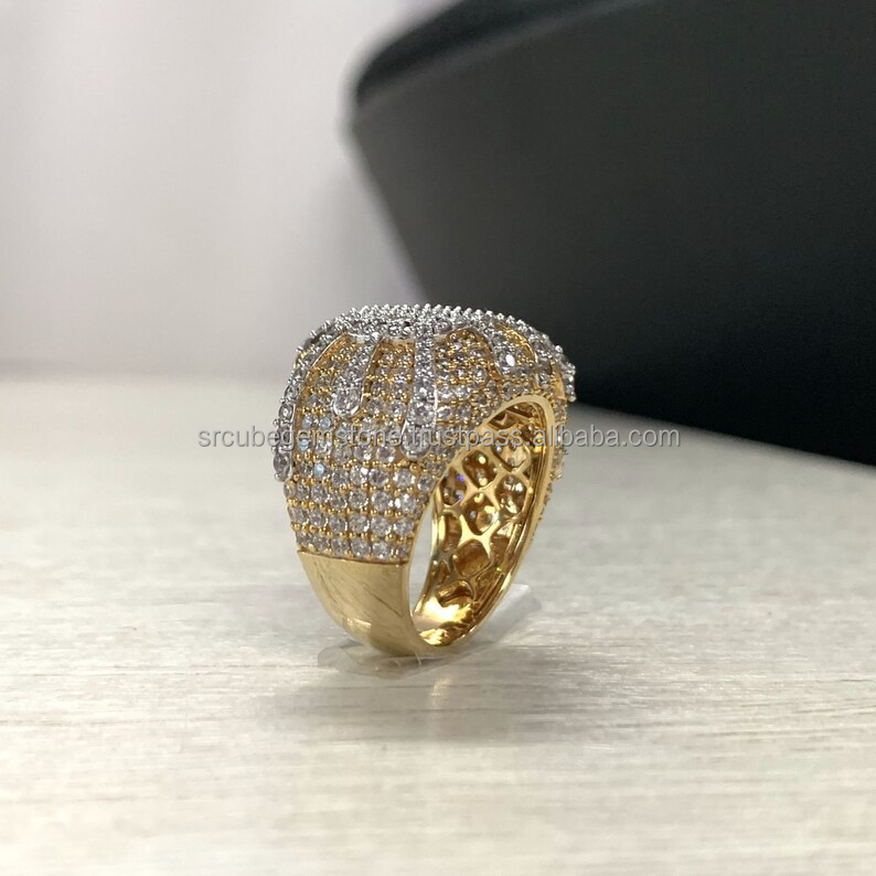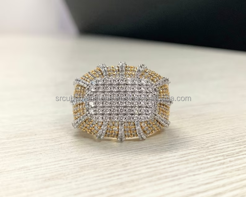 Bague Hip Hop en or jaune 14 carats entièrement cloutée avec diamants, coupe Moissanite, clarté VVS, certifiée GRA pour mariage ou fiançailles