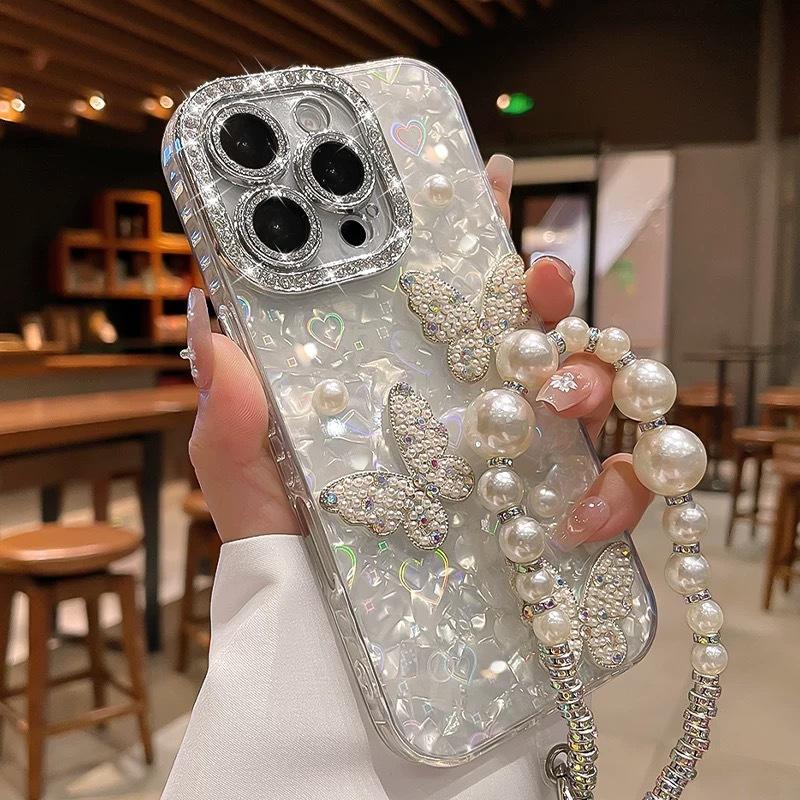 Coque à motif de trous fins adaptée aux étuis de téléphone IP 11, IP 17 Promax, 13 nœud papillon perlé, 12/15 Pro.