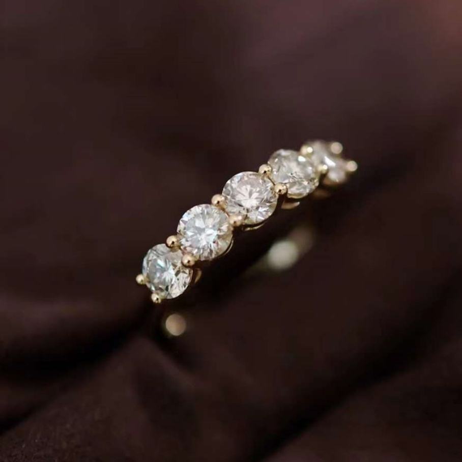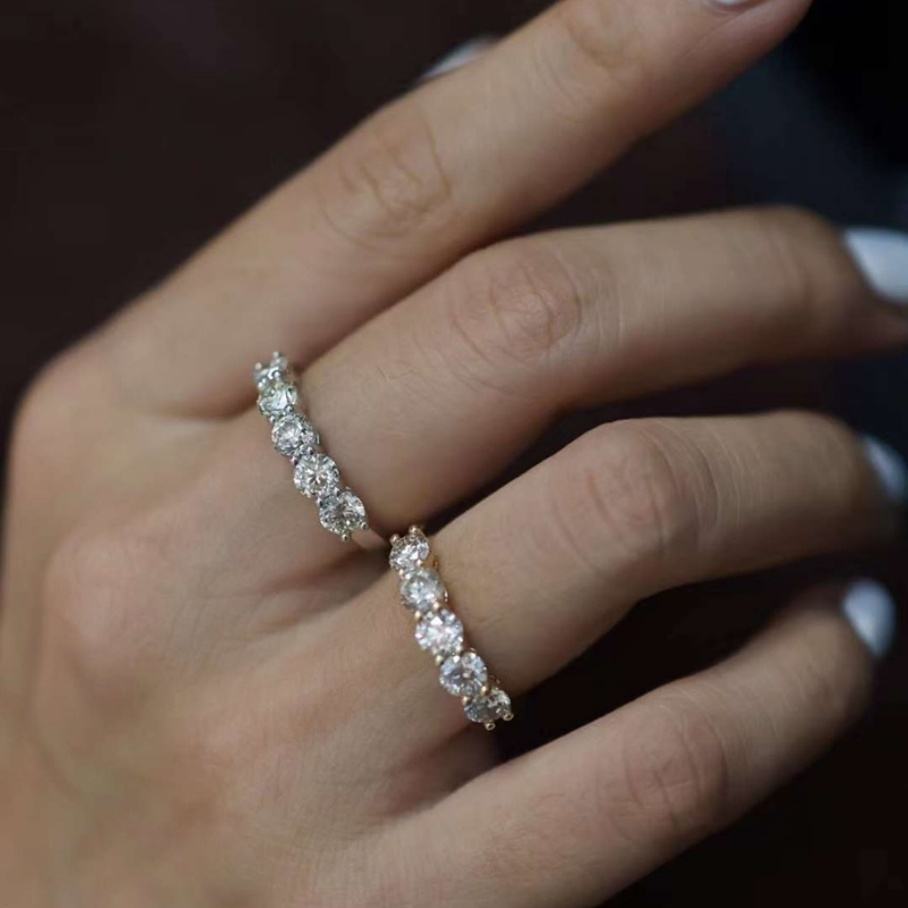 Nom:Bagues de mariage demi-éternité rondes en or 14K/18K avec moissanite