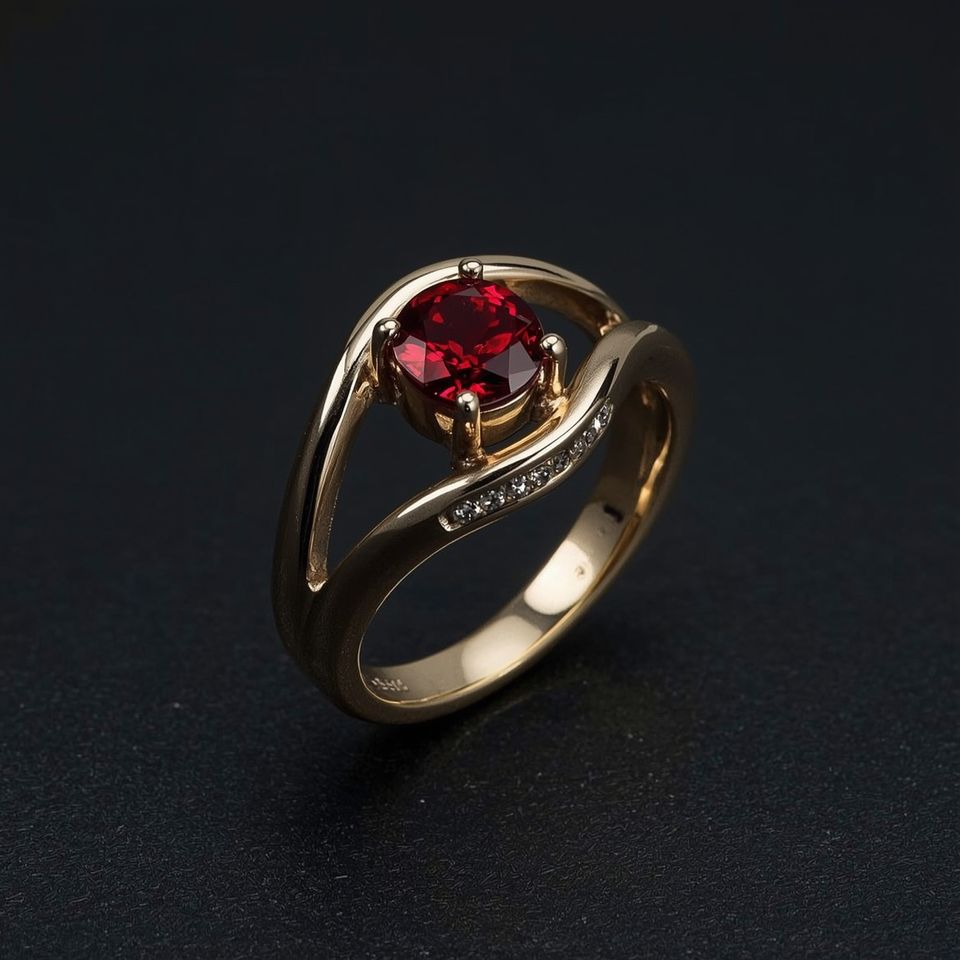 Fine Jewelry 10K Solid Gold Garnet Ring with Diamonds | Jewelry for Women OEM Custom Thailand Jewelry Manufacturer