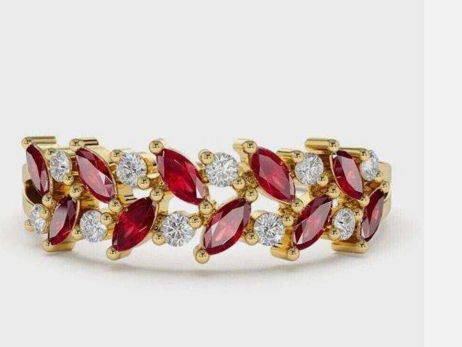 Product name:18K Gold Marquise Cut Ruby and Round Cut Diamond Band Ring