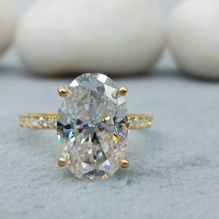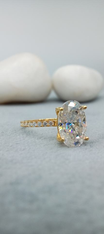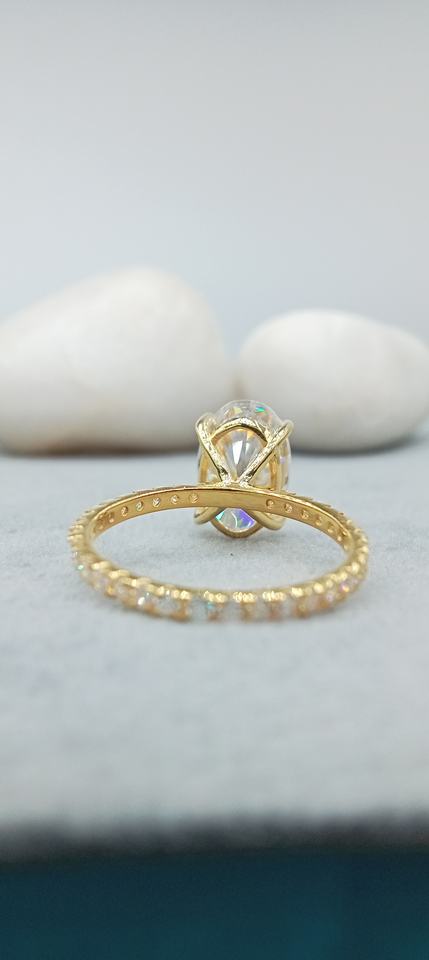 Bijoux fins 14K or jaune massif forme ovale diamant bague de fiançailles 2.0 CT blanc VVS laboratoire cultivé ensemble de mariage bague
