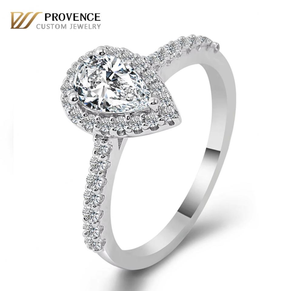 Bijoux fins Chine Bague en or véritable 18 carats sur mesure Bague de fiançailles Bague en moissanite taille poire pour femmes Bague de promesse taille poire