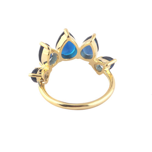 Fine Jewelry Faceted Pear Shape Multi Stone Blue Iolite Quartz Statement Ring Gold Plated Prong Set Royal Crown Ring 7US Size