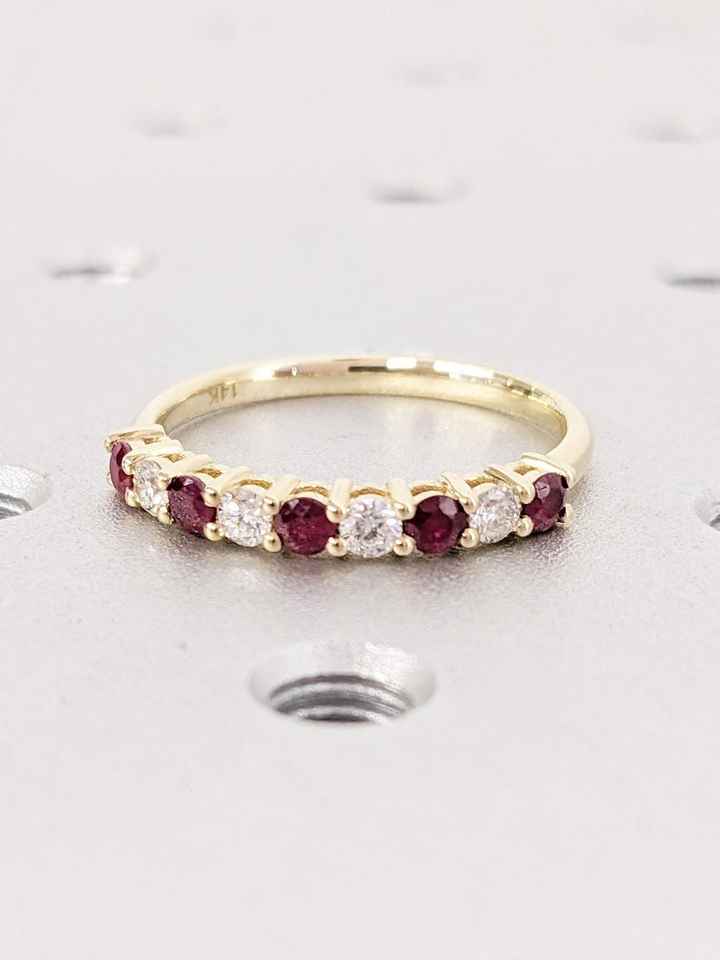 Fine Jewelry Fashionable Fine Rings 14k Pure Gold Natural Ruby & Lab Diamond Half Eternity Ruby Wedding Rings Wholesale OEM ODM
