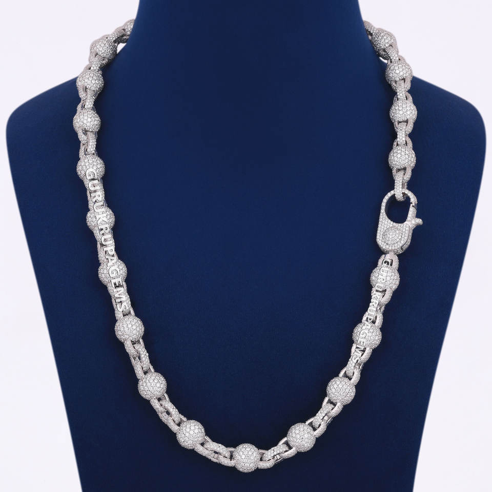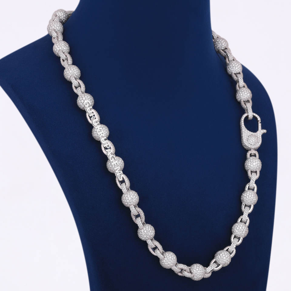 Chaîne à billes en argent sterling 925 de style hip-hop, sertie de diamants de laboratoire CVD de 10,5 mm, style hip-hop, bijoux fins