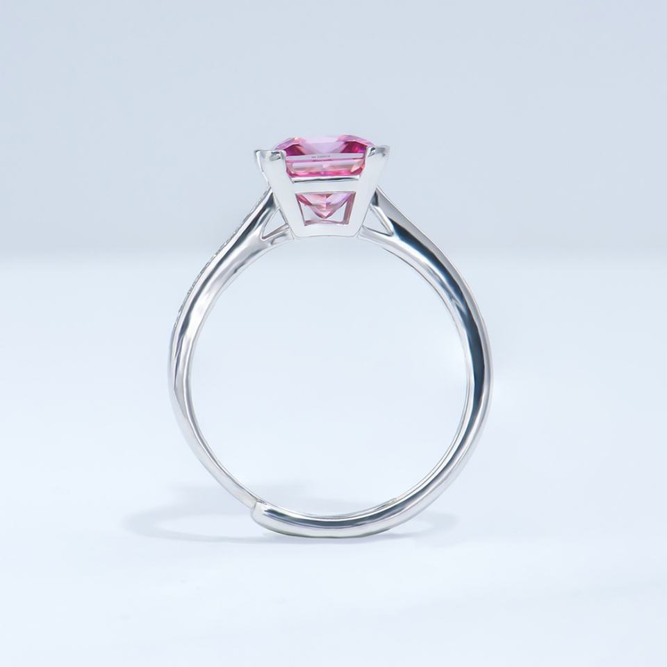 Bijoux fins, bagues en moissanite, argent sterling 925, moissanite rose taille princesse 2 carats, bijoux de mode pour les fêtes et les mariages