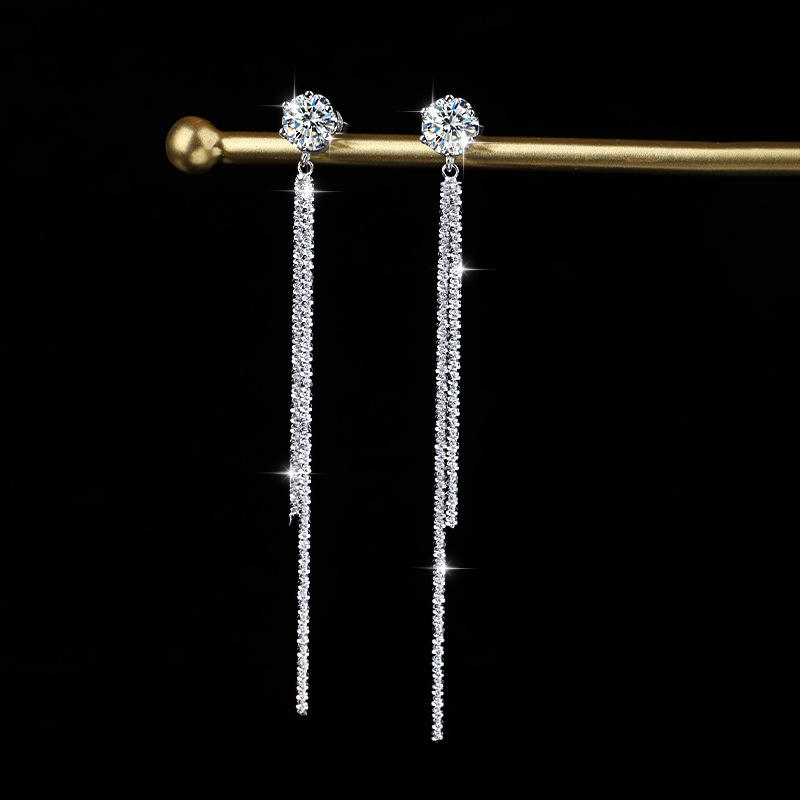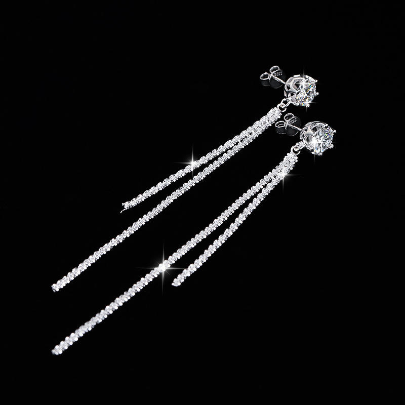 Bijoux fins, boucles d'oreilles pendantes à franges longues en moissanite ronde de 1 carat, VVS GRA, argent sterling 925, hypoallergéniques, pour femmes