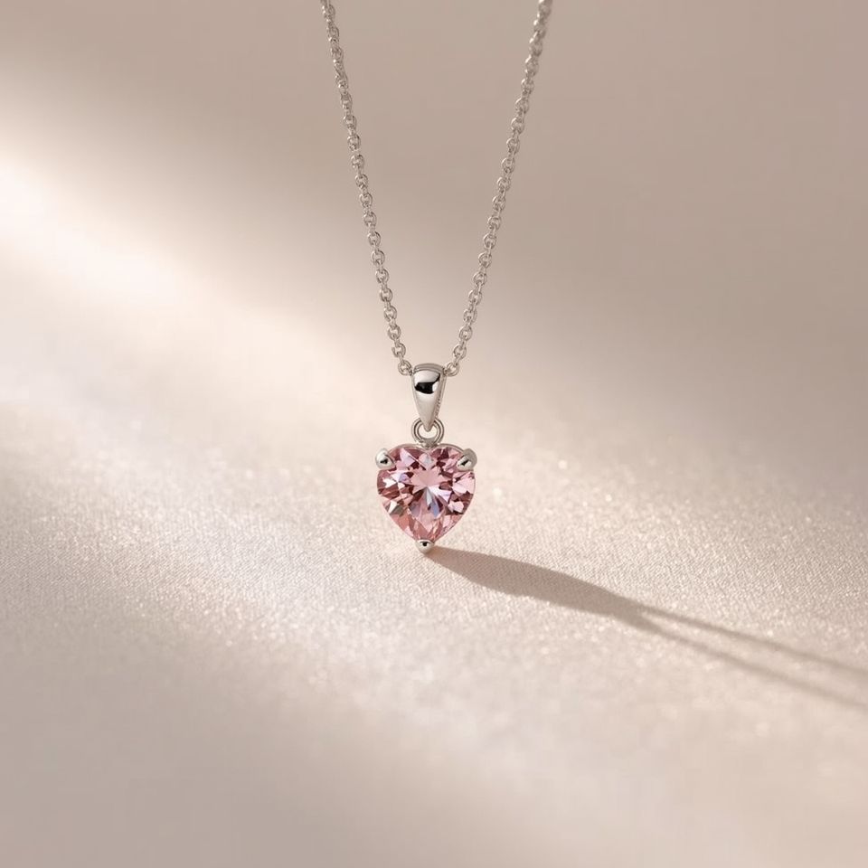 Fine Jewelry for Women 18K Solid Gold Heart Pink Sapphire Pendant Necklace | Luxury Thailand Jewelry OEM
