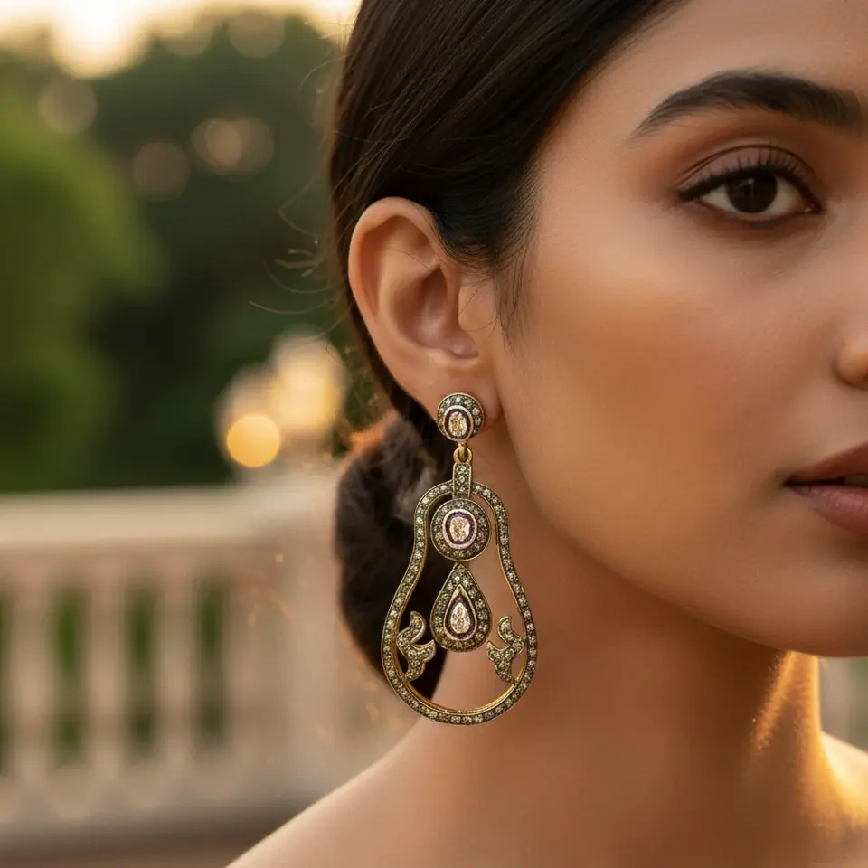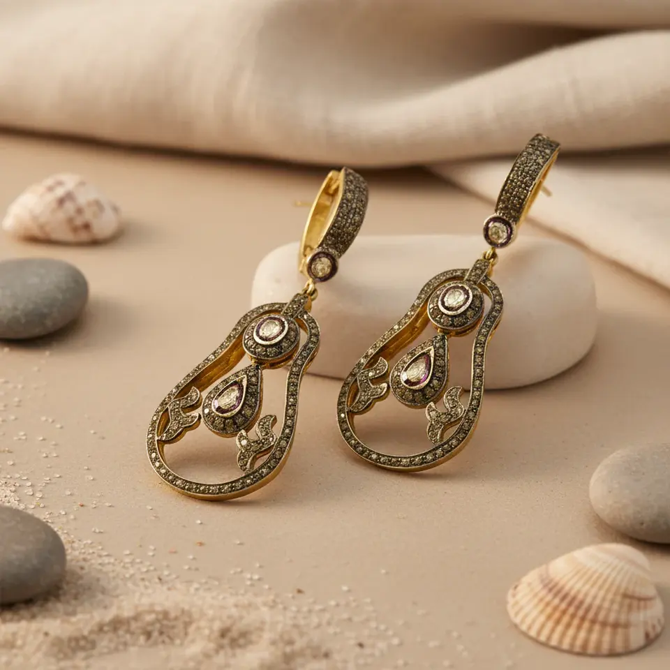 Fine Jewelry for Women Gold Plating Teardrop Earrings with Diamonds Platinum Cuff Design Geometric Religious Style