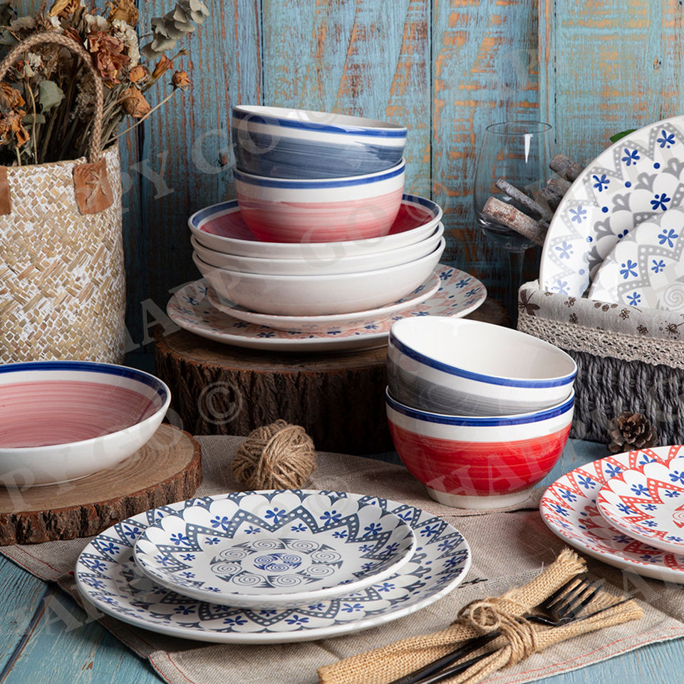 Vaisselle en porcelaine fine, vaisselle en grès, motif mandala, peinte à la main, vaisselle en céramique, 18 pièces