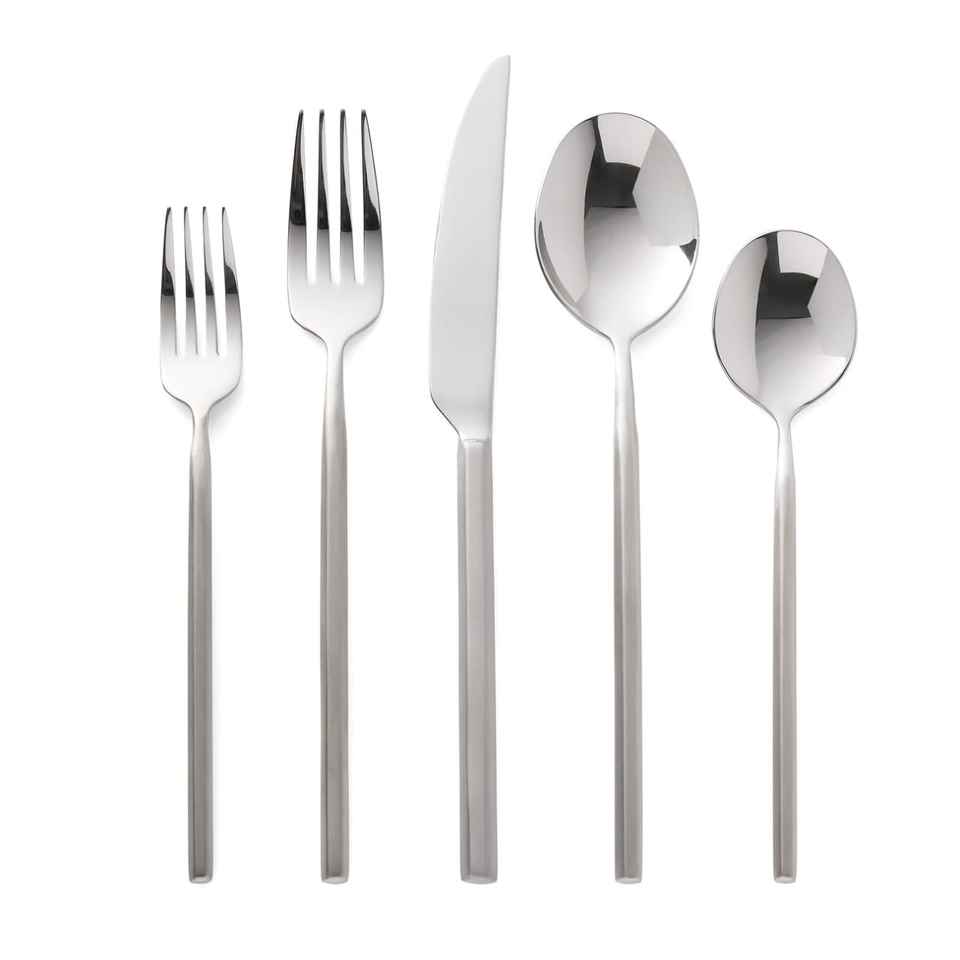 Ensemble de couverts en acier inoxydable de qualité supérieure avec manche en argent, poli miroir, durable, moderne, cinq pièces, cuillère, fourchette, ensemble de 5 pièces