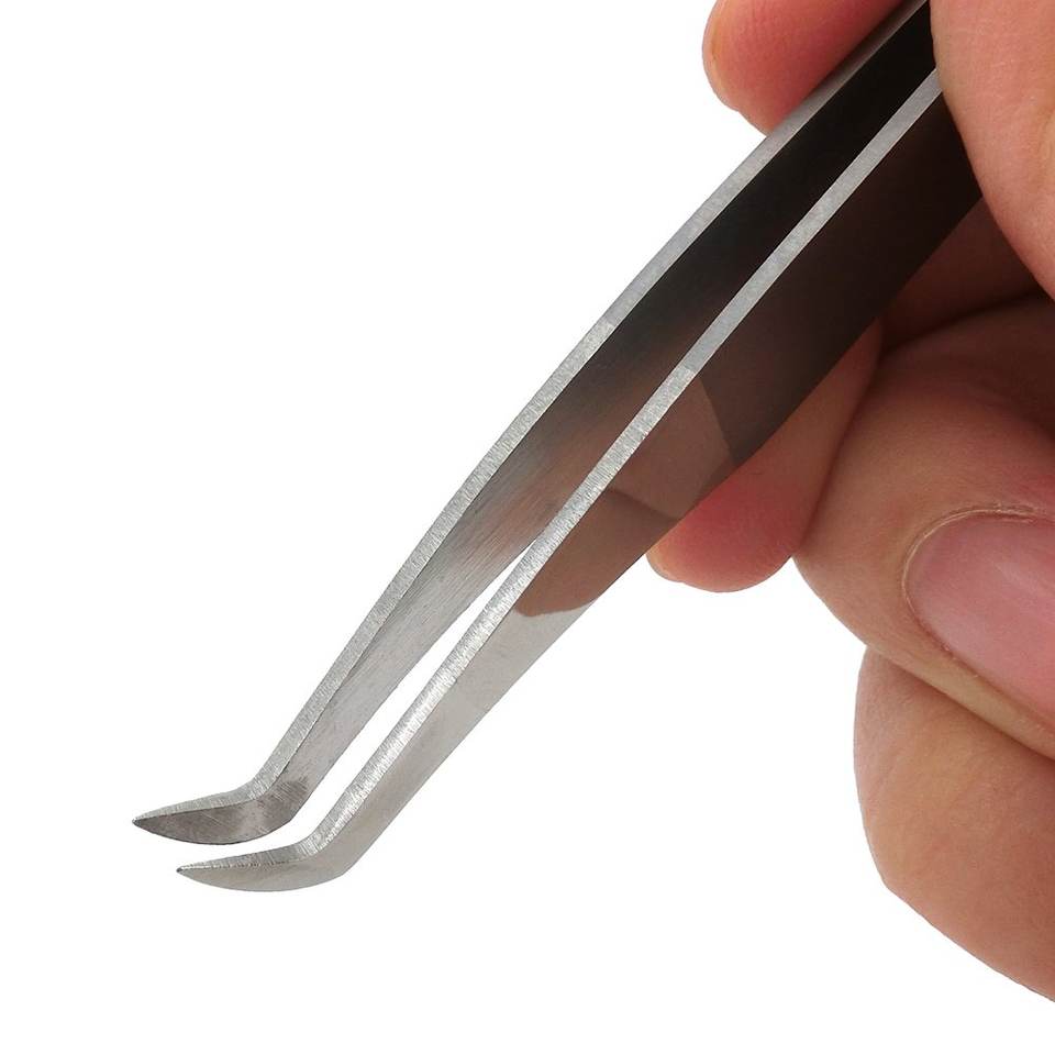 Extensions de cils en acier inoxydable de qualité fine pince à épiler modèle d'applicateur incliné en fibre de volume incurvé droit pour les amateurs de beauté