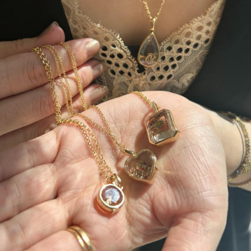 Fine Transparent Photo Box Open and Close Diy Pendant Necklace with ZIRCON Diamonds Hollow Carved 18k Gold Jewelry