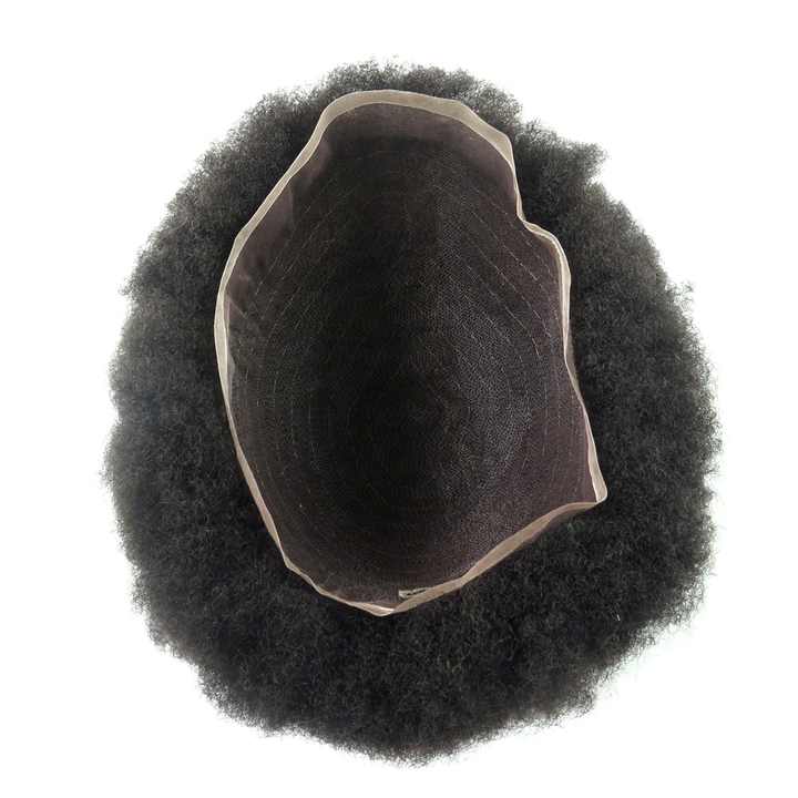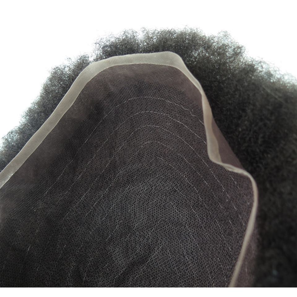 Doreen — toupet bouclée 100% naturelle, cheveux humains, Fine couleur Mono brodée, pour hommes noirs