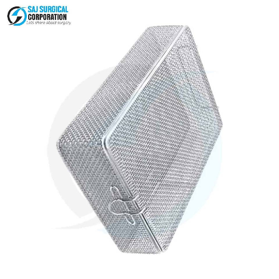 Panier en maille fine avec couvercle en acier inoxydable, conçu pour la stérilisation et l'organisation médicale manuelle