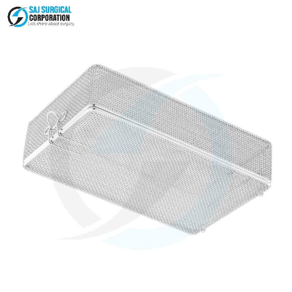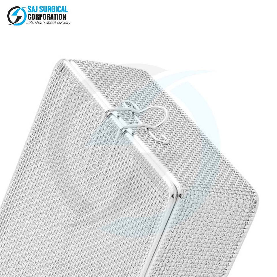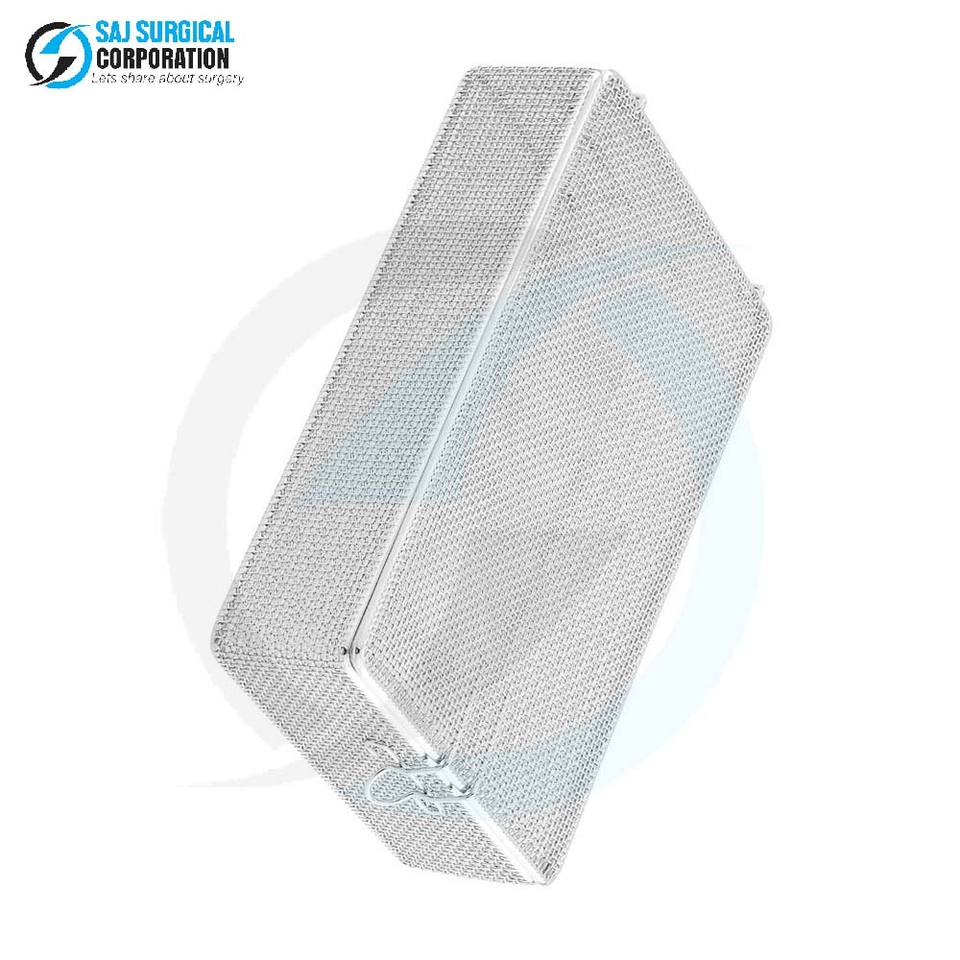 Panier en maille fine avec couvercle en acier inoxydable de qualité médicale, certifié CE, réutilisable pour la manipulation sécurisée des instruments chirurgicaux