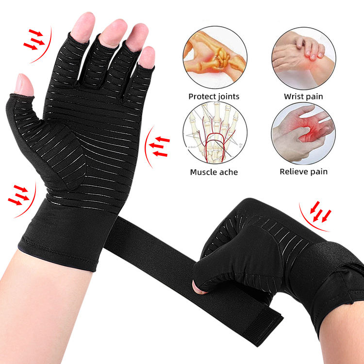 Gants sans doigts en fibre de cuivre pour l'arthrite avec soutien de la main et du poignet Compression Soulagement de la maladie de Raynaud - Polyester d'été