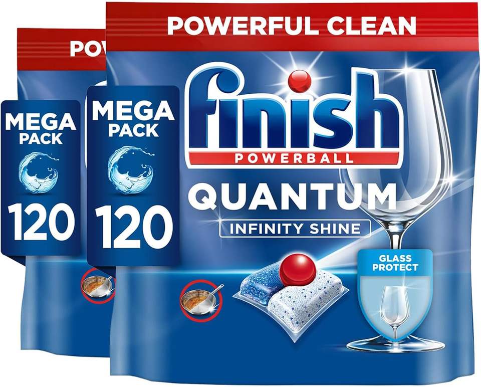 Tablettes lave-vaisselle Finish Quantum Infinity Shine en vrac | Parfum : Frais | Taille : 240 comprimés pour lave-vaisselle (120 comprimés x 2) | Pour une touche pétillante